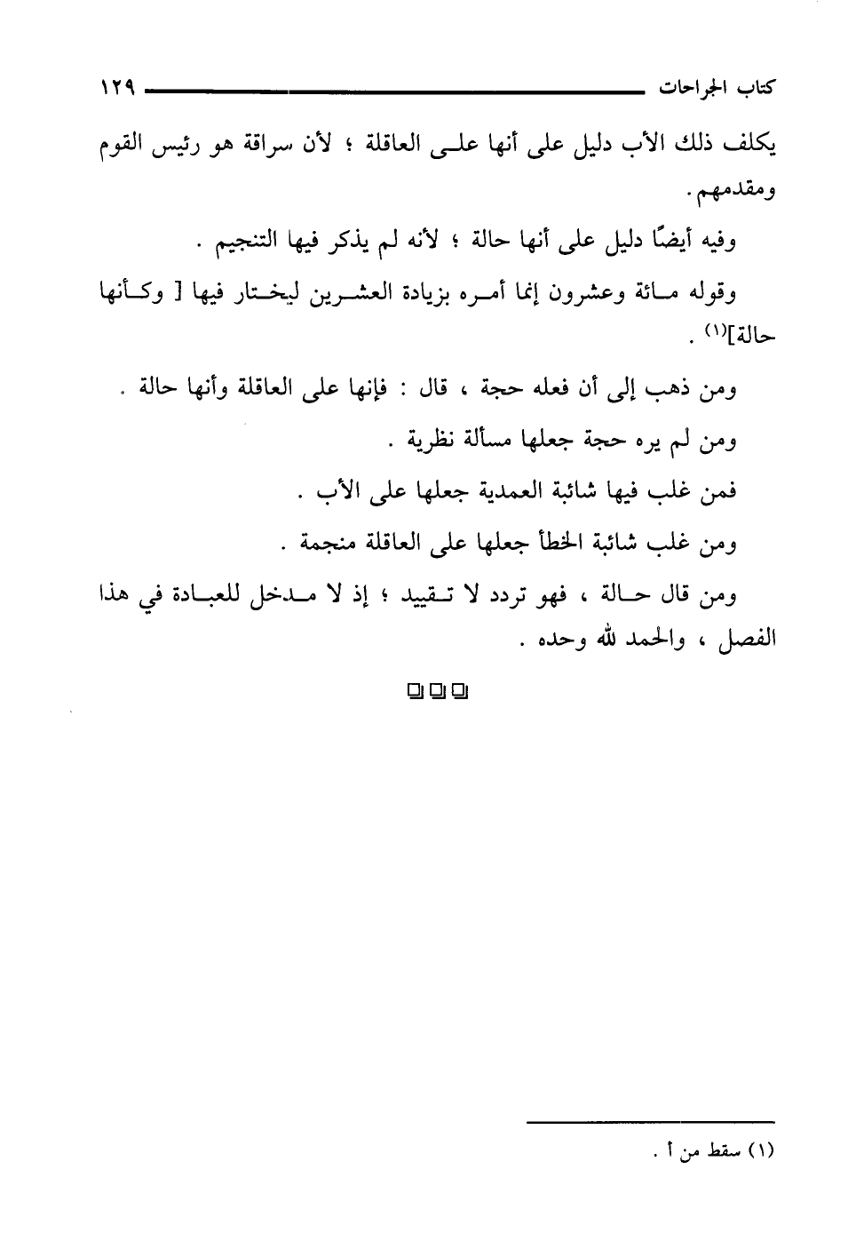يكلف ذلك الأب دليل على أنها على العاقلة؛ لأن سراقة هو رئيس القوم ومقدمهم.