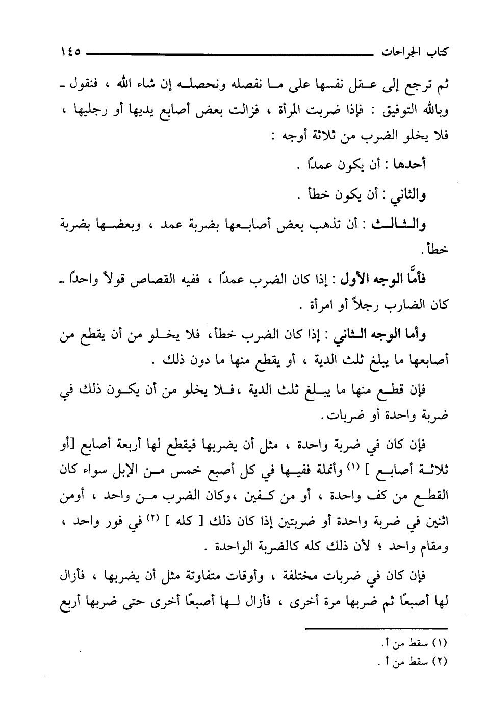 ثم ترجع إلى عقل نفسها على ما نفصله ونحصله إن شاء الله، فنقول -وبالله التوفيق: فإذا ضربت المرأة، فزالت بعض أصابع يديها أو رجليها، فلا يخلو الضرب من ثلاثة أوجه:
