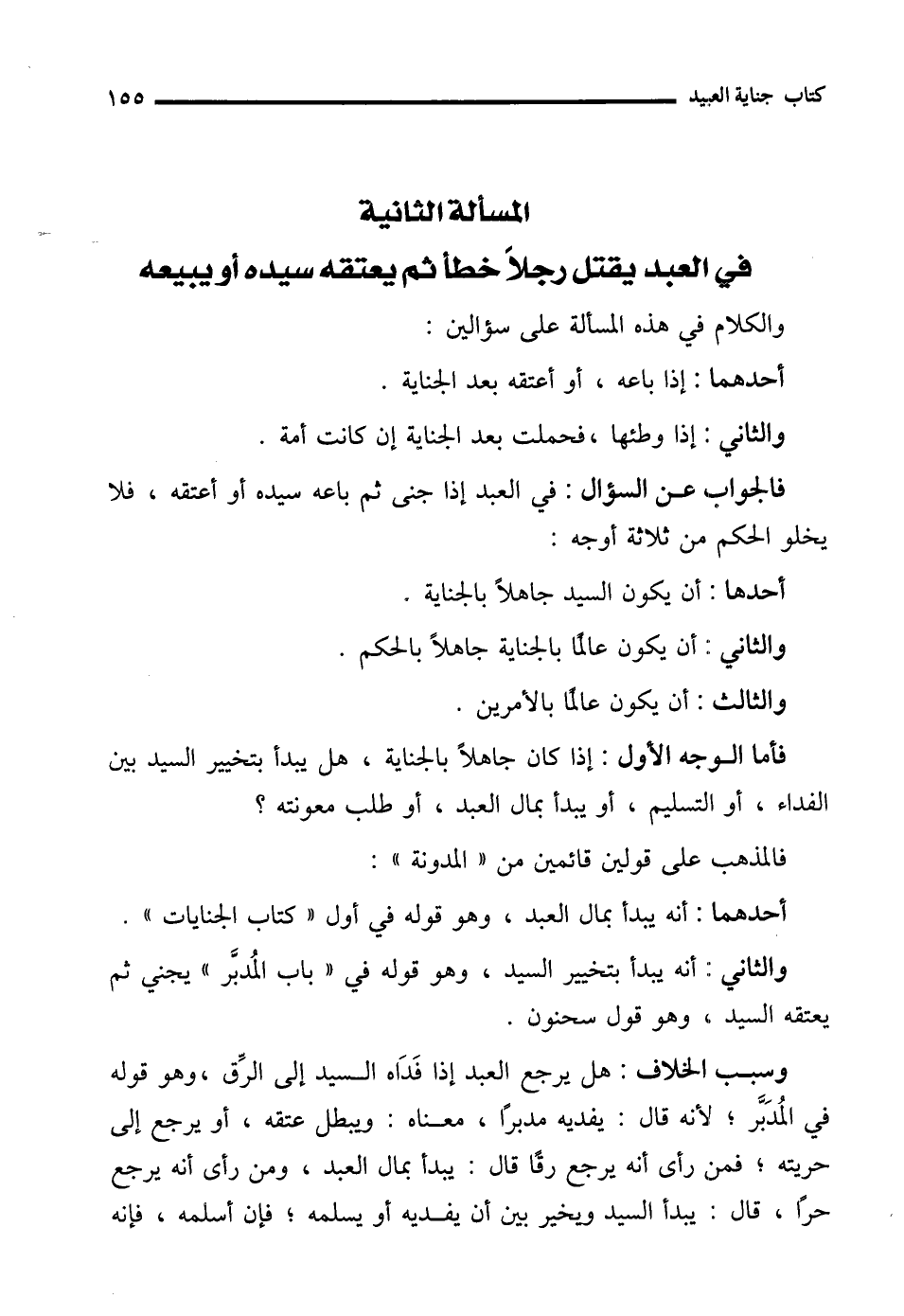 المسألة الثانية في العبد يقتل رجلًا خطأ ثم يعتقه سيده أو يبيعه