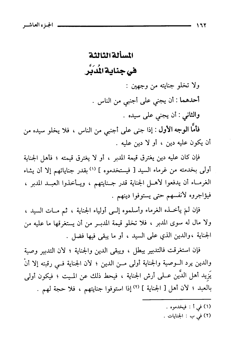 المسألة الثالثة في جناية المُدَبَّر