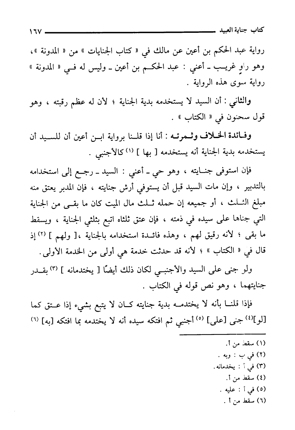 رواية عبد الحكم بن أعين عن مالك في "كتاب الجنايات" من "المدونة"، وهو راوٍ غريب -أعني: عبد الحكم بن أعين- وليس له في "المدونة" رواية سوى هذه الرواية.