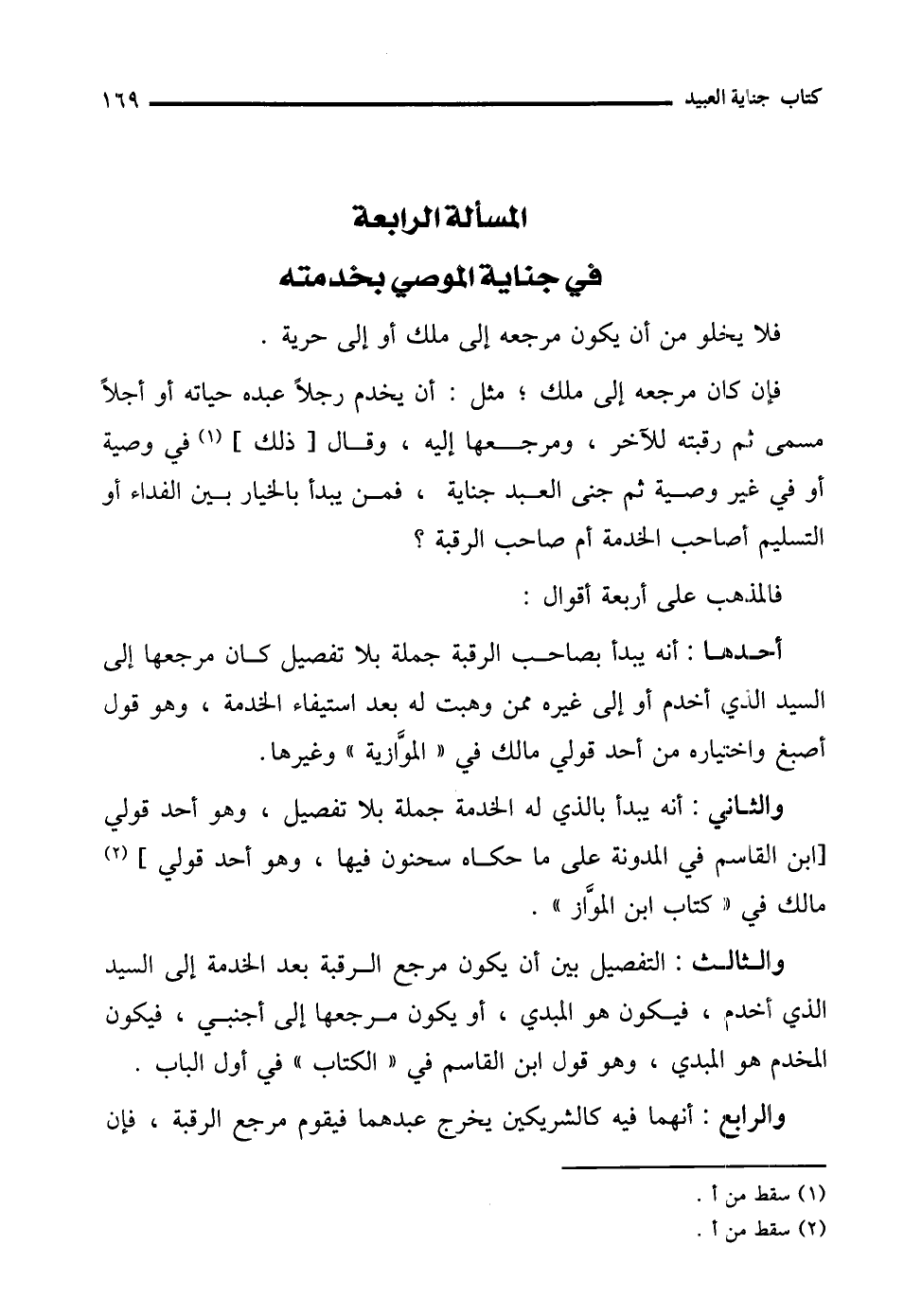 المسألة الرابعة في جناية الموصي بخدمته