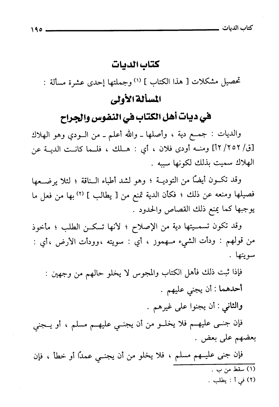المسألة الأولى في ديات أهل الكتاب في النفوس والجراح
