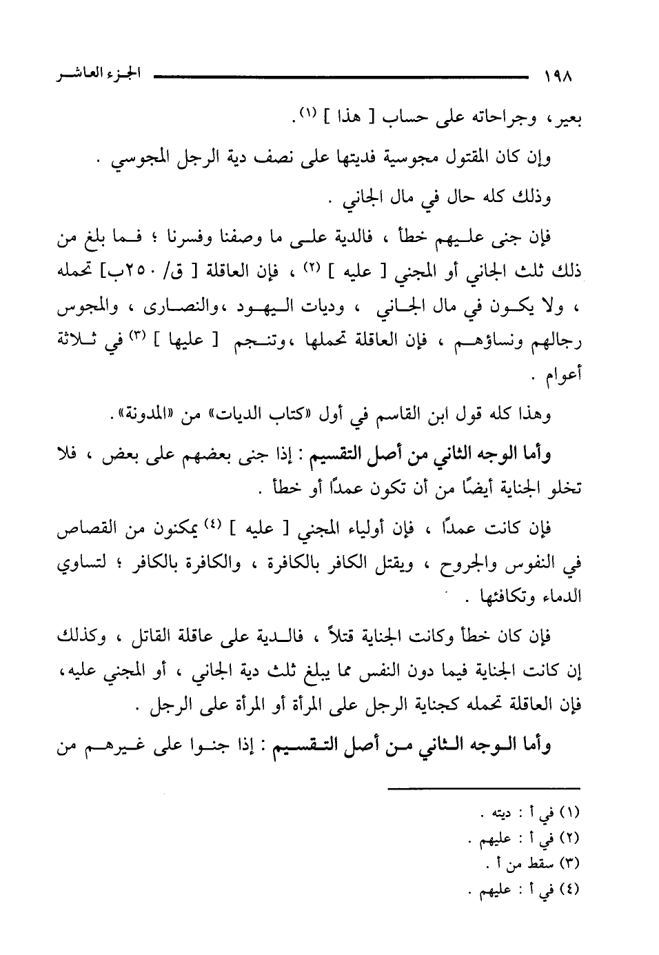 وهذا كله قول ابن القاسم في أول "كتاب الديات" من "المدونة".