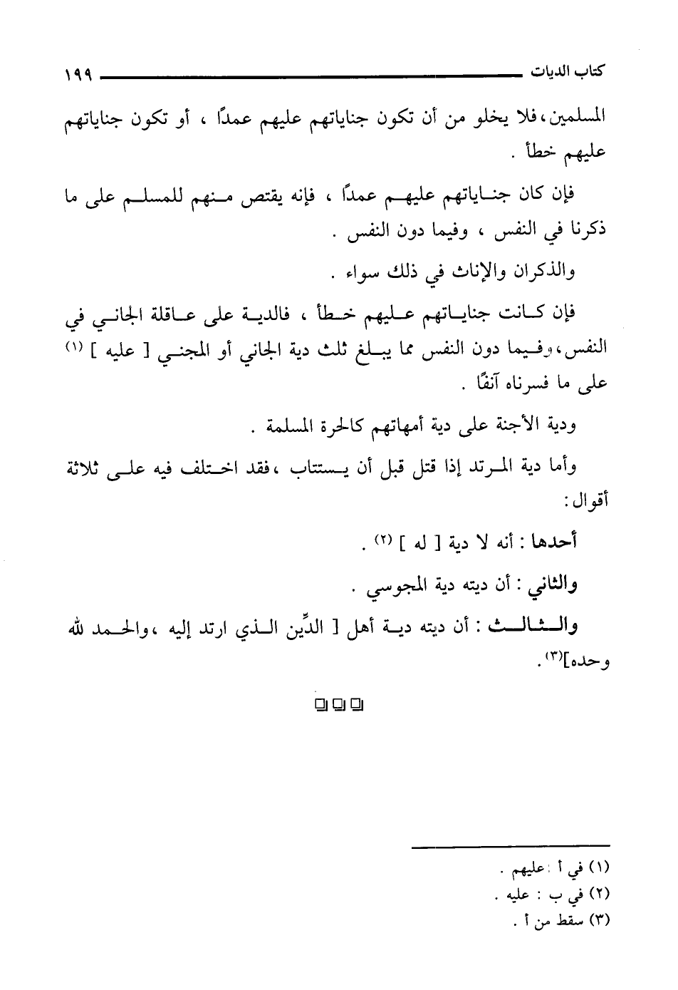 المسلمين، فلا يخلو من أن تكون جناياتهم عليهم عمدًا، أو تكون جناياتهم عليهم خطأ.