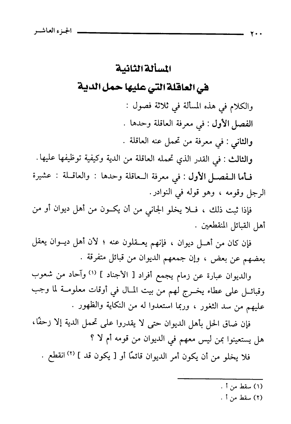 المسألة الثانية في العاقلة التي عليها حمل الدية