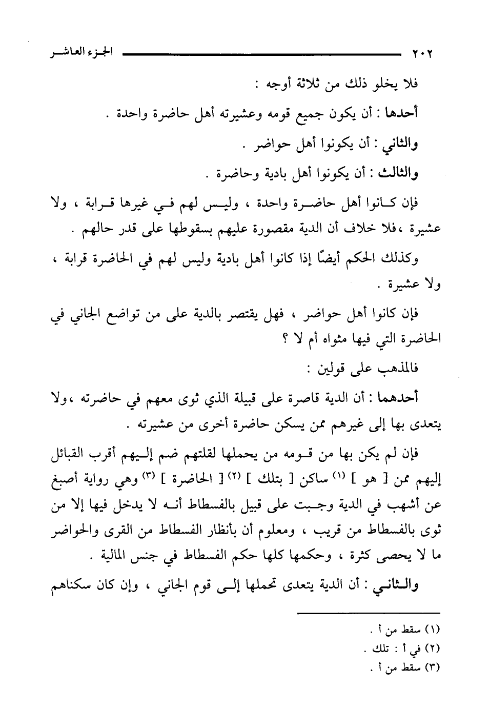 أحدهما: أن الدية قاصرة على قبيلة الذي ثوى معهم في حاضرته، ولا يتعدى بها إلى غيرهم ممن يسكن حاضرة أخرى من عشيرته.
