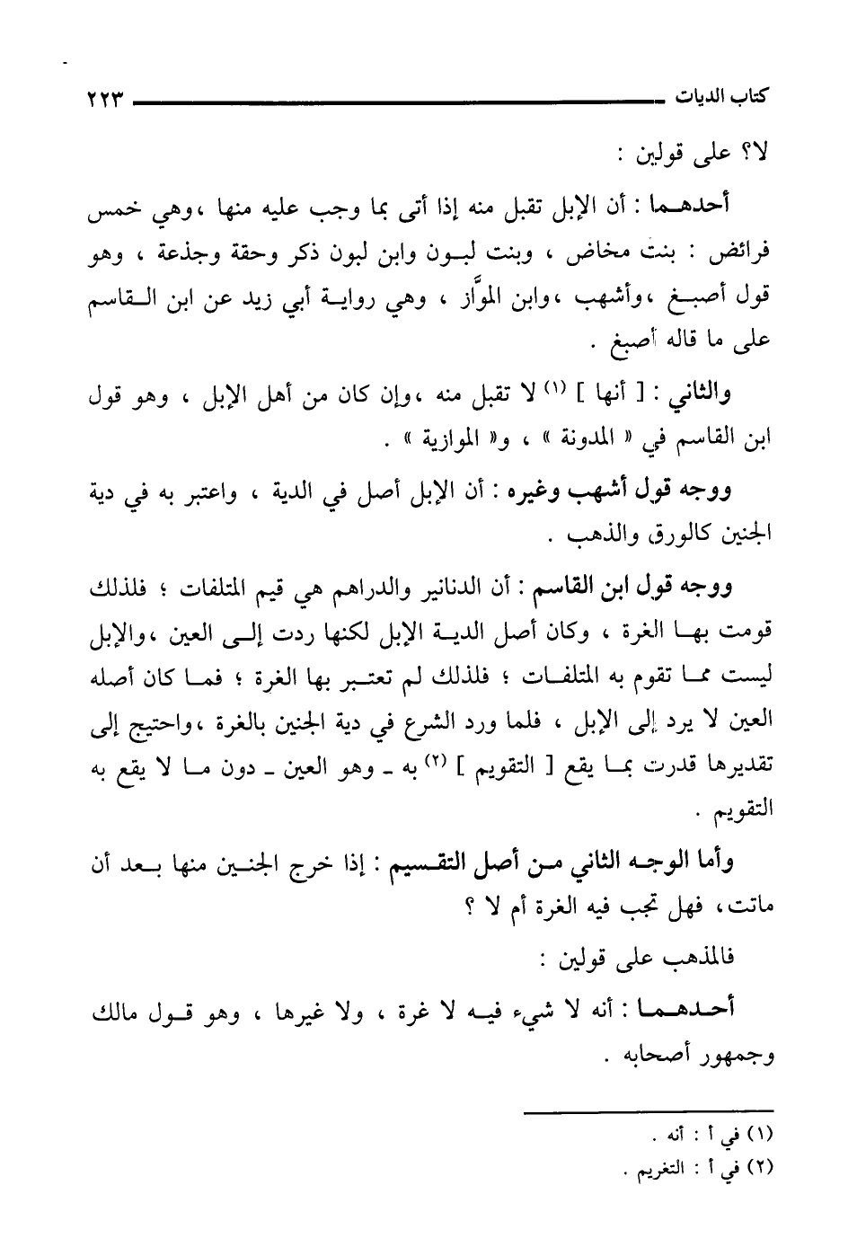 ووجه في قول أشهب وغيره: أن الإبل أصل في الدية، واعتبر به في دية الجنين كالورق والذهب.