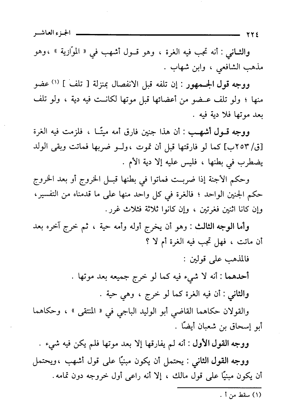 وأما الوجه الثالث: وهو أن يخرج أوله وأمه حية، ثم خرج آخره بعد أن ماتت، فهل تجب فيه الغرة أم لا؟