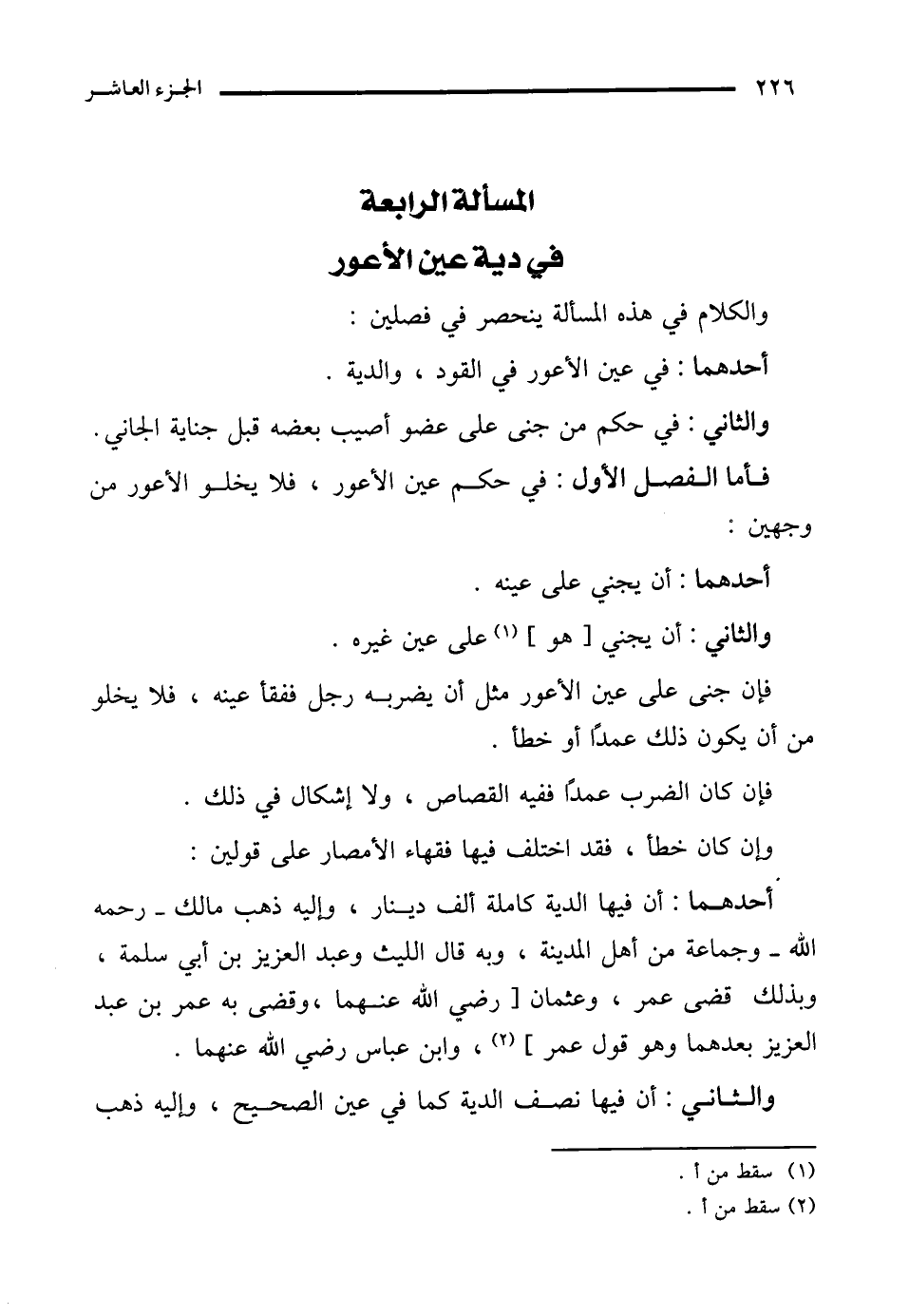 المسألة الرابعة في دية عين الأعور