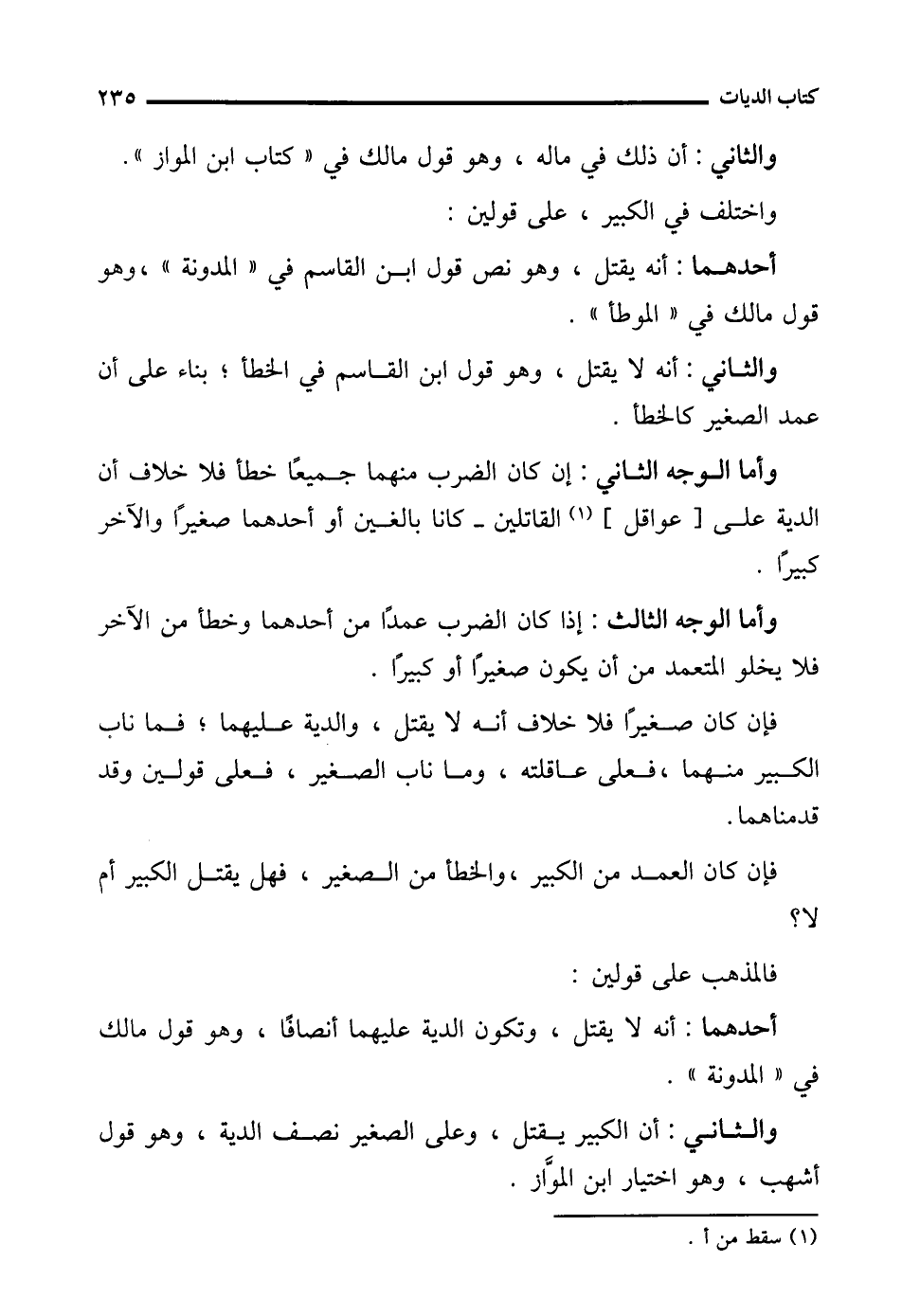 وأما الوجه الثالث: إذا كان الضرب عمدًا من أحدهما وخطأ من الآخر فلا يخلو المتعمد من أن يكون صغيرًا أو كبيرًا.