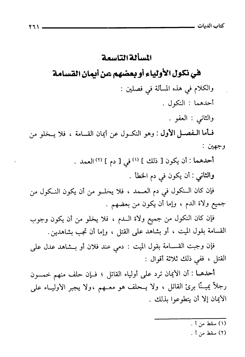 المسألة التاسعة في نكول الأولياء أو بعضهم عن أيمان القسامة