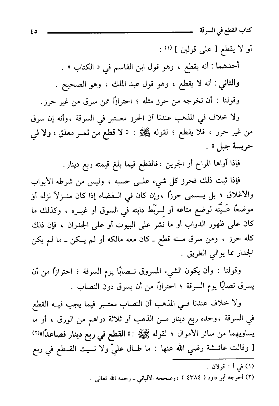 والثاني: أنه لا يقطع، وهو قول عبد الملك، وهو الصحيح.
