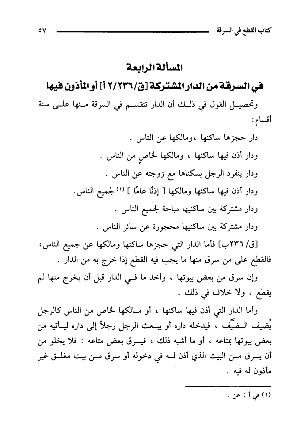 المسألة الرابعة في السرقة من الدار المشتركة أو المأذون فيها