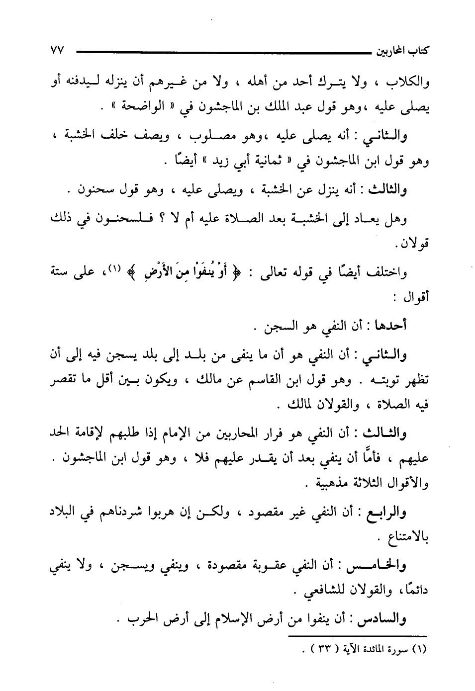 والثالث: أن النفي هو فرار المحاربين من الإِمام إذا طلبهم لإقامة الحد عليهم، فأمَّا أن ينفي بعد أن يقدر عليهم فلا، وهو قول ابن الماجشون. والأقوال الثلاثة مذهبية.