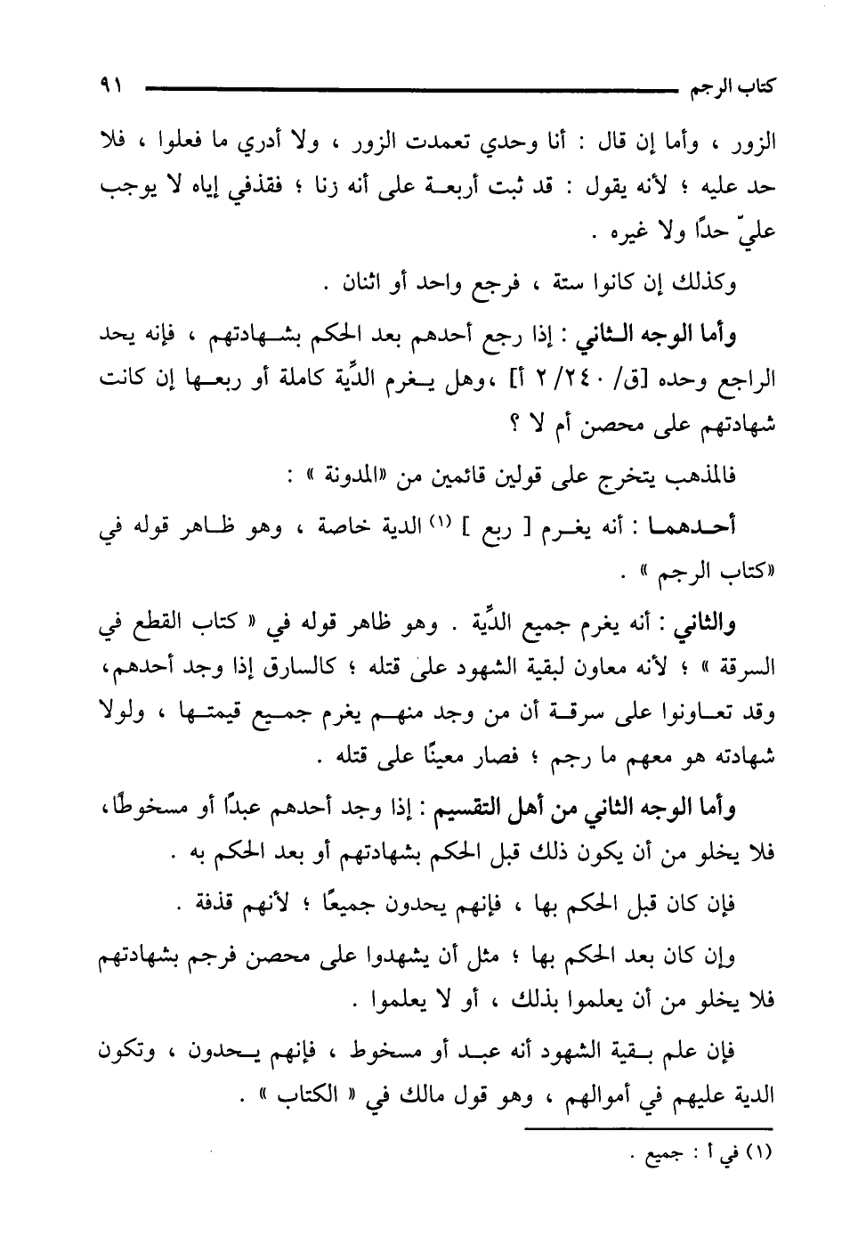 وأما الوجه الثاني: إذا رجع أحدهم بعد الحكم بشهادتهم، فإنه يحد الراجع وحده، وهل يغرم الدِّية كاملة أو ربعها إن كانت شهادتهم على محصن أم لا؟