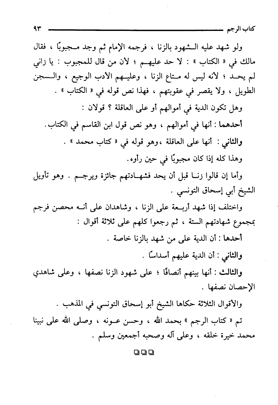 تم "كتاب الرجم" بحمد الله، وحسن عونه، وصلى الله على نبينا محمَّد خيرة خلقه، وعلى آله وصحبه أجمعين وسلم.