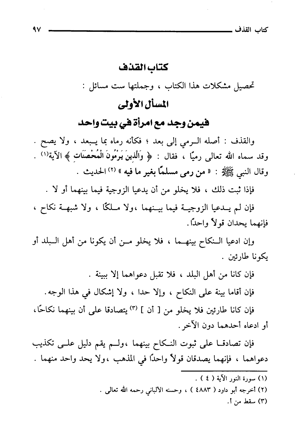 المسألة الأولى فيمن وجد مع امرأة في بيت واحد
