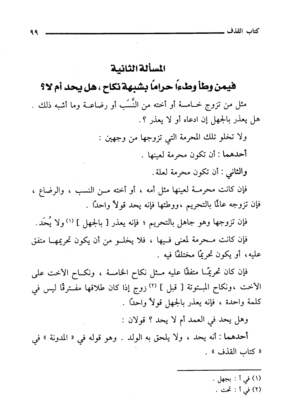 المسألة الثانية فيمن وطأ وطئًا حرامًا بشبهة نكاح، هل يحد أم لا؟