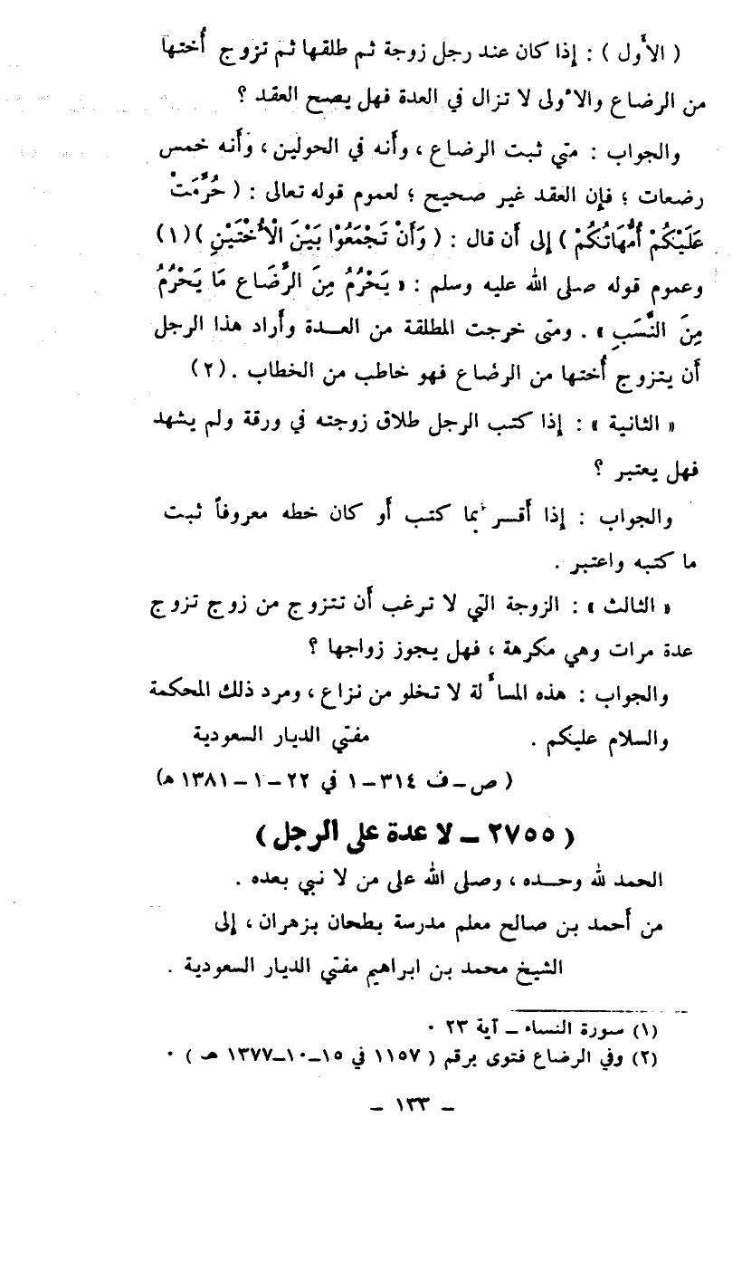 (¬2) وفي الرضاع فتوى برقم (1157 في 15-10-1377هـ) .