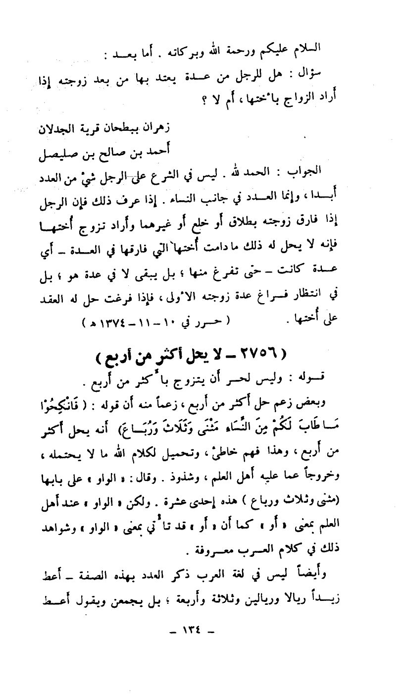 الجواب: الحمد لله. ليس في الشرع على الرجل شيء من العدد أبداً وإنما العدد في جانب النساء. إذا عرف ذلك فإن الرجل إذا فارق زوجته بطلاق أو خلع أو غيرهما وأراد تزوج أختها فإنه لا يحل له ذلك ما دامت أختها التي فارقها في العدة - أي عدة كانت - حتى تفرغ منها، بل يبقى لا في عدة هو، بل في انتظار فراغ عدة زوجته الأولى، فإذا فرغت حل له العقد على أختها.
