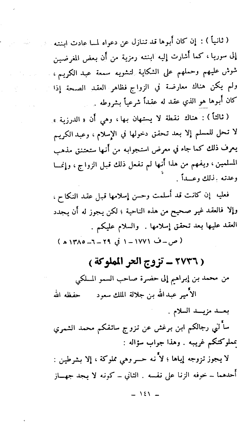 سألني رجالكم ابن برغش عن تزوج سائقكم محمد الشمري بمملوكتكم غريبة. وهذا جواب سؤاله: