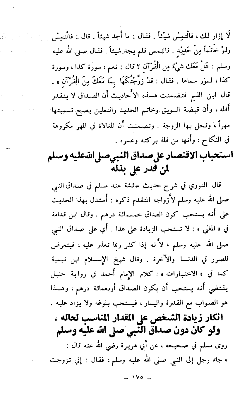 استحباب الاقتصار على صداق النبي صلى الله عليه وسلم لمن قدر على بذله