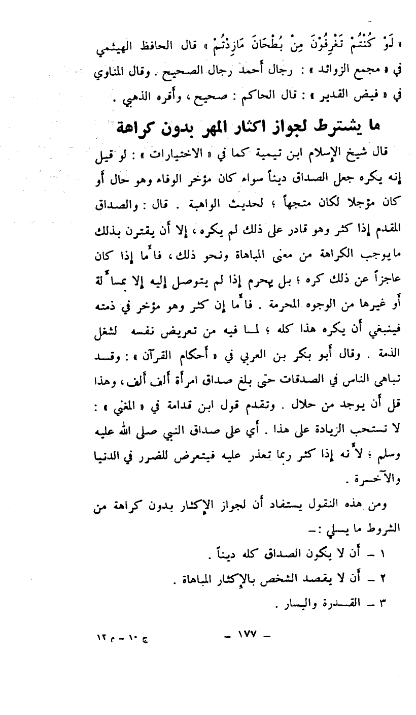 ما يشترط لجواز إكثار المهر بدون كراهة