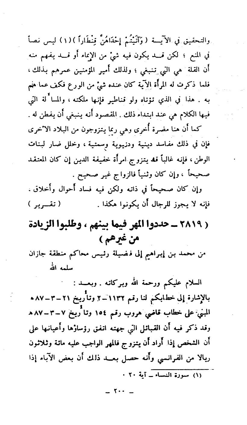 من محمد بن إبراهيم إلى فضيلة رئيس محاكم منطقة جازان