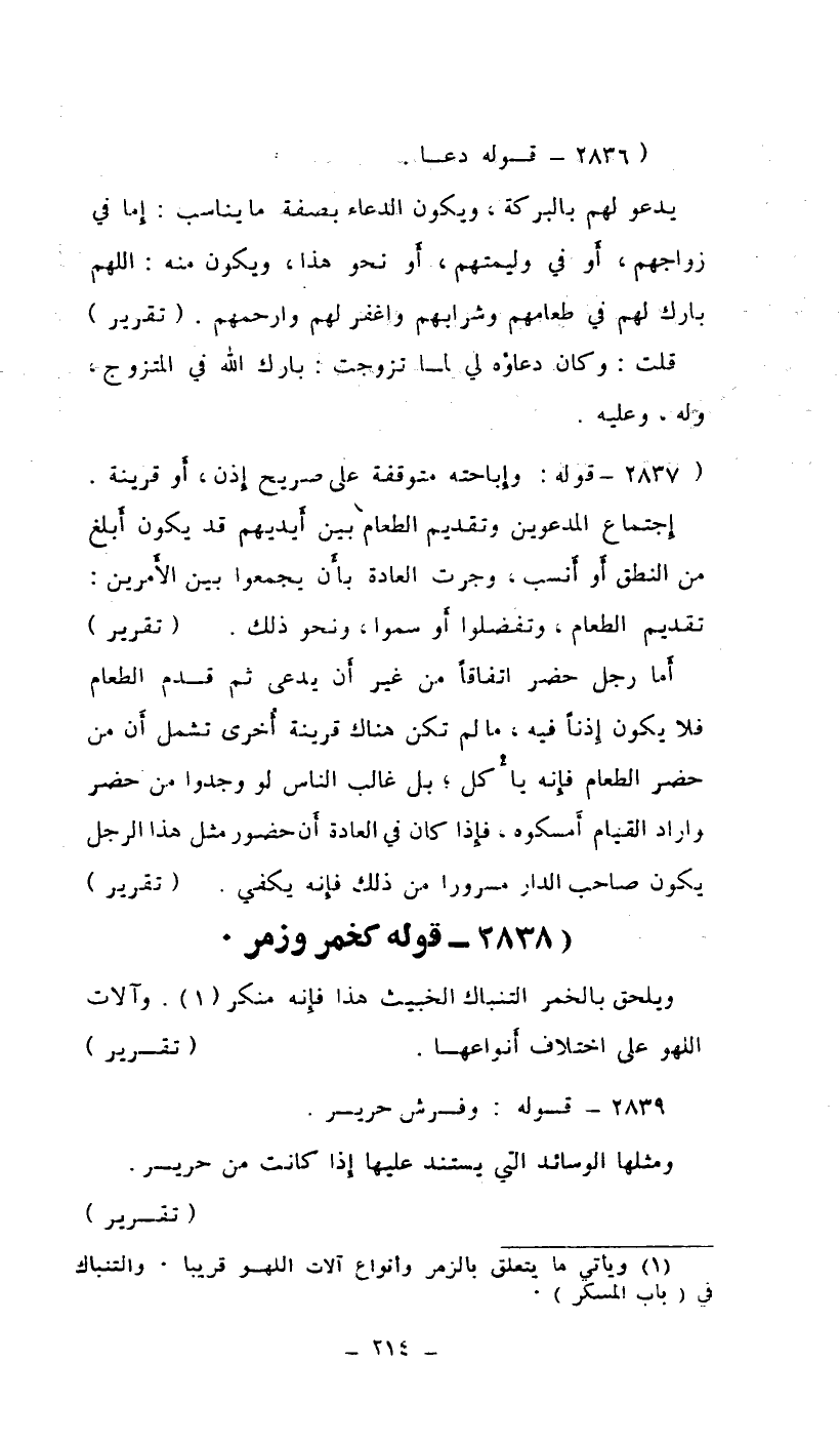 (¬1) ويأتي ما يتعلق بالزمر وأنواع آلات اللهو قريباً. والتنباك في (باب المسكر) .