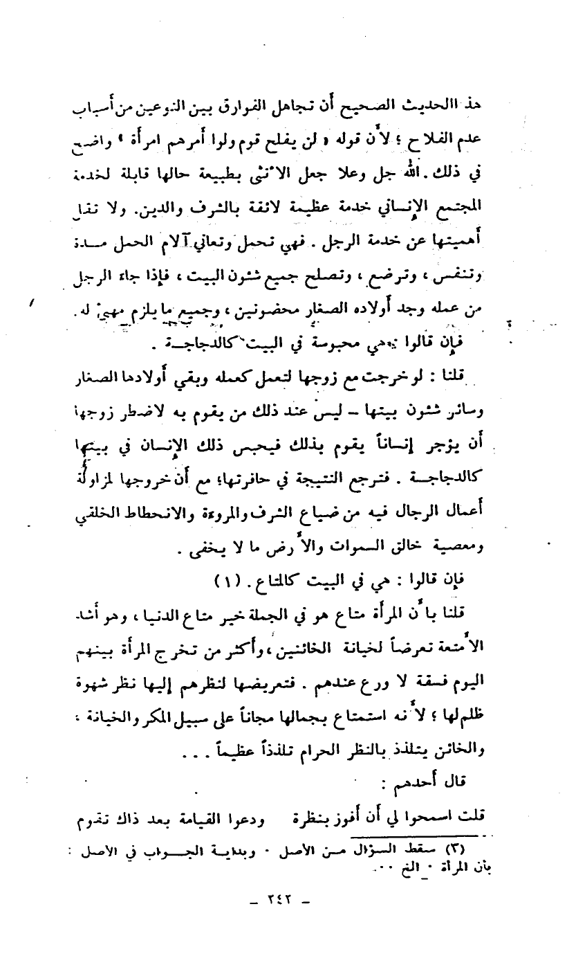 (¬1) سقط السؤال من الأصل. وبداية الجواب في الأصل بأن المرأة.. الخ.