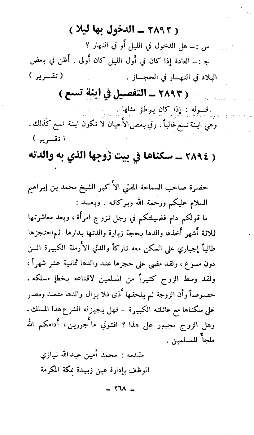 خصوصاً وأن الزوجة لم يلحقها أذى فلا يزال والدها متعند ومصر على سكناها مع عائلته الكبيرة - فهل يجيز له الشرع هذا المسلك؟ وهل الزوج مجبور على هذا؟ افتوني مأجورين، أدامكم الله ملجأ للمسلمين.