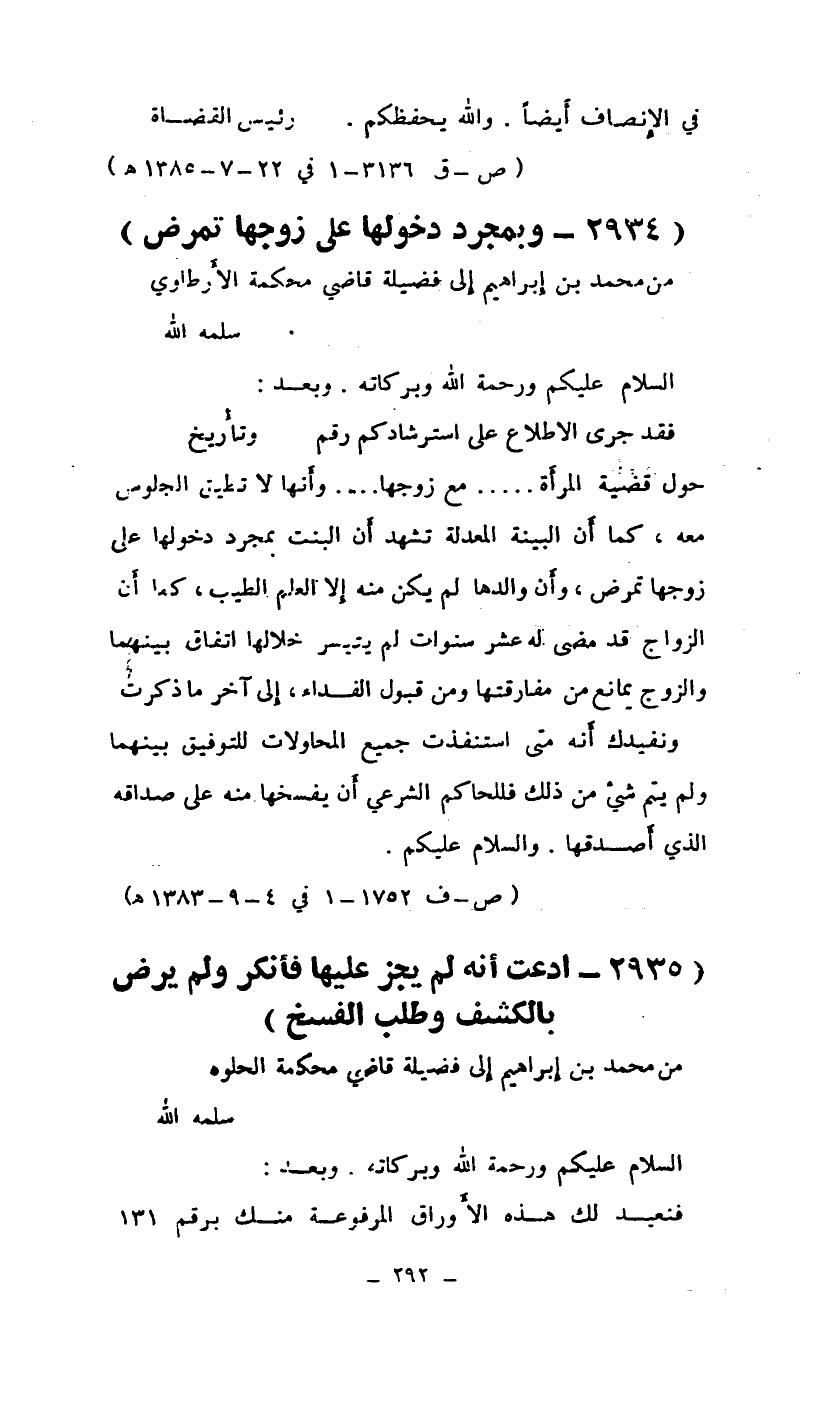من محمد بن إبراهيم إلى فضيلة قاضي محكمة الأرطاوي