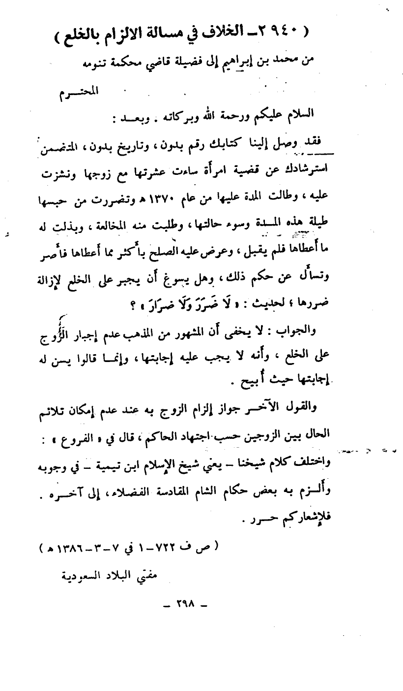 من محمد بن إبراهيم إلى فضيلة قاضي محكمة تنومة