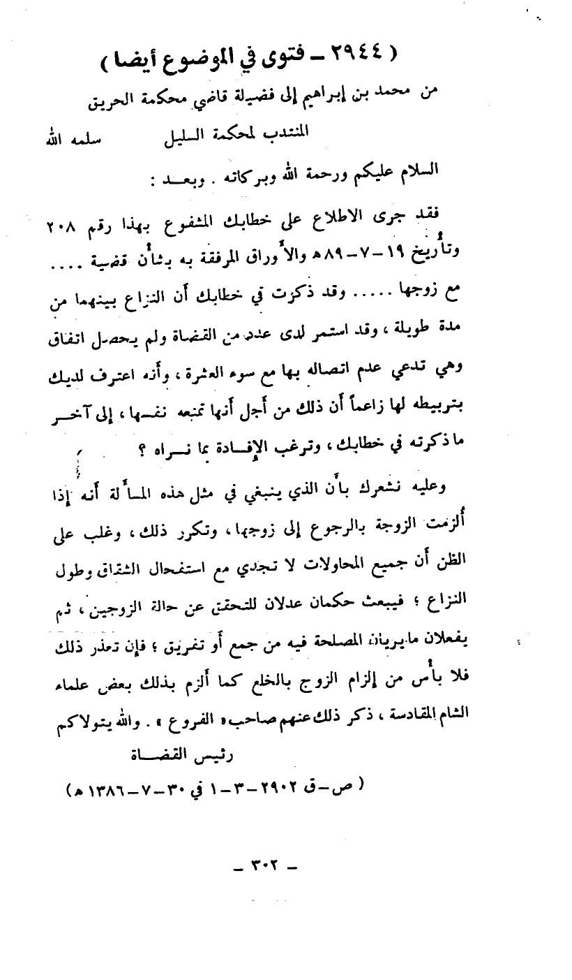 من محمد بن إبراهيم إلى فضيلة قاضي محكمة الحريق