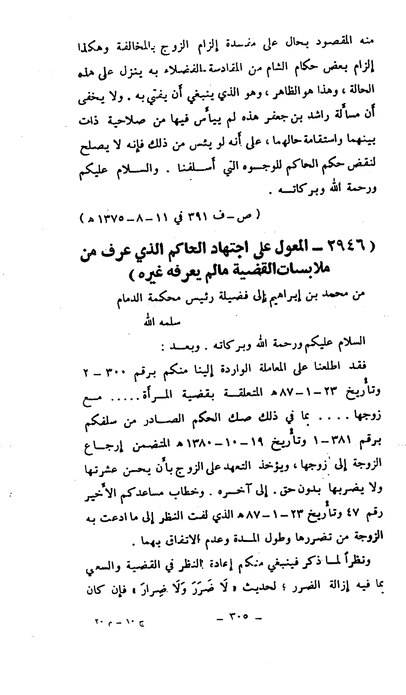 من محمد بن إبراهيم إلى فضيلة رئيس محكمة الدمام