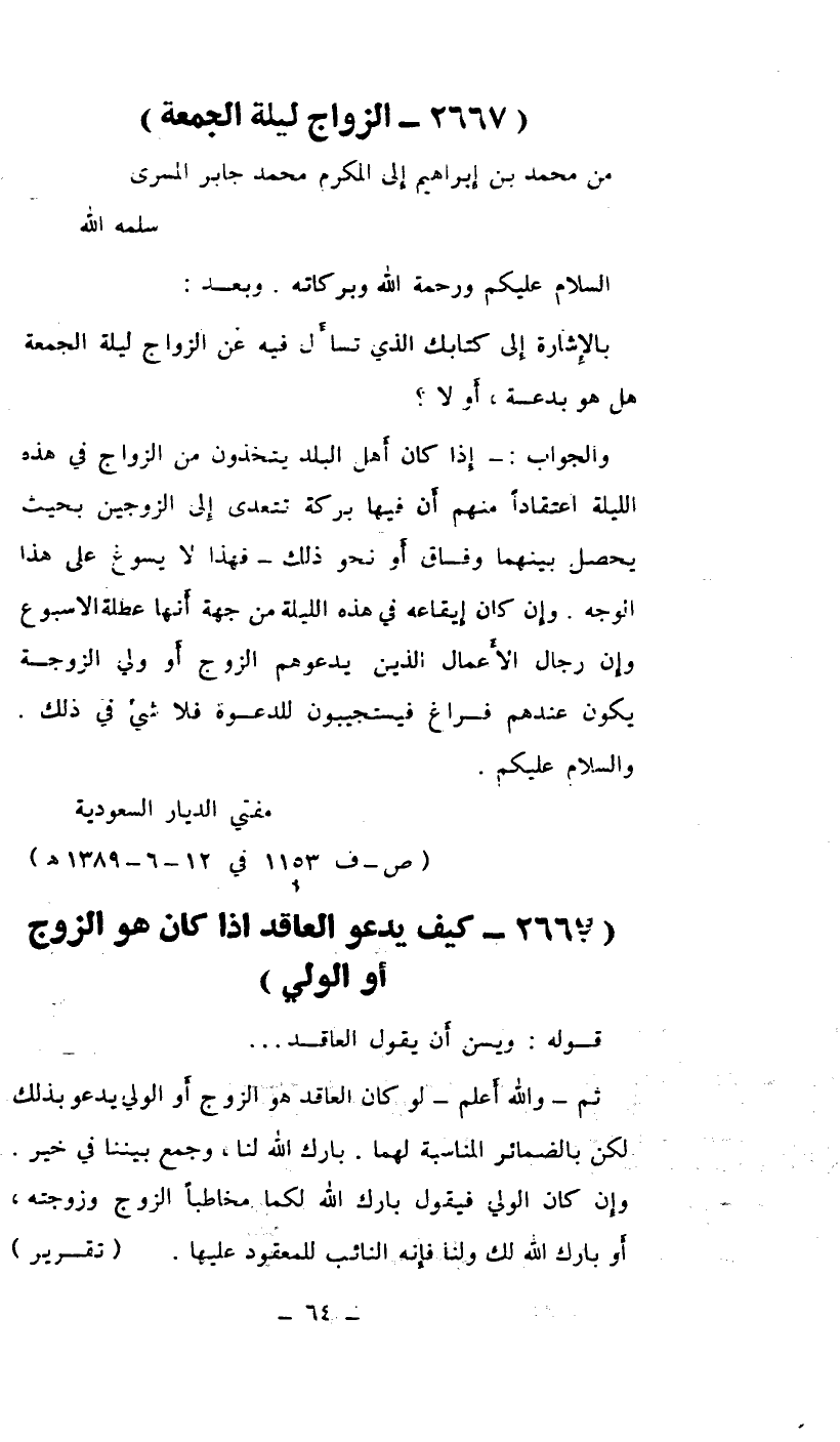 بالإشارة إلى كتابك الذي تسأل فيه عن الزواج ليلة الجمعة هل هو بدعة. أو لا؟