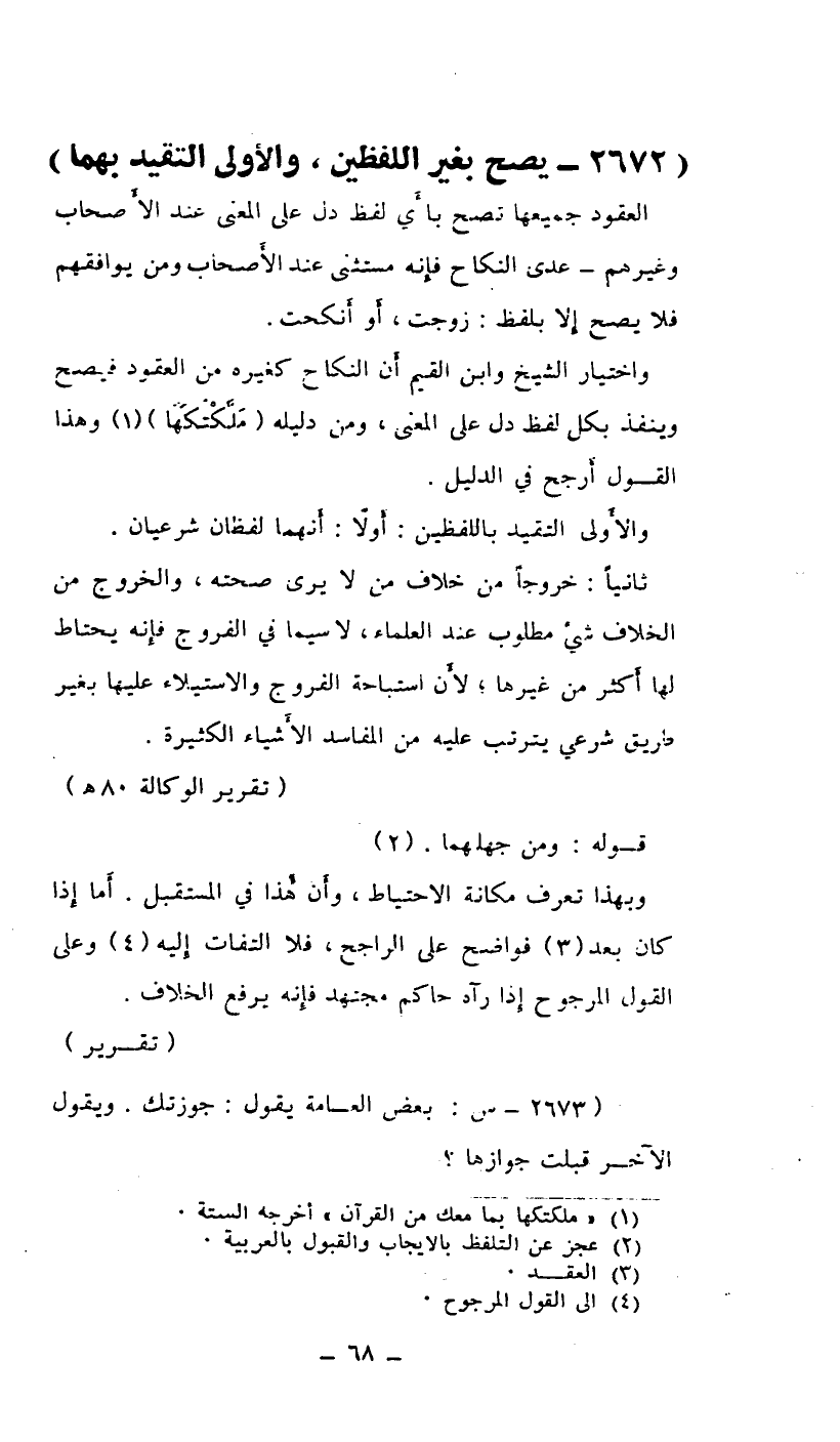 واختيار الشيخ وابن القيم أن النكاح كغيره من العقود فيصح وينفذ بكل لفظ دل على المعنى، ومن دليله (ملكتكتها) (¬1) وهذا القول أرجح في الدليل.