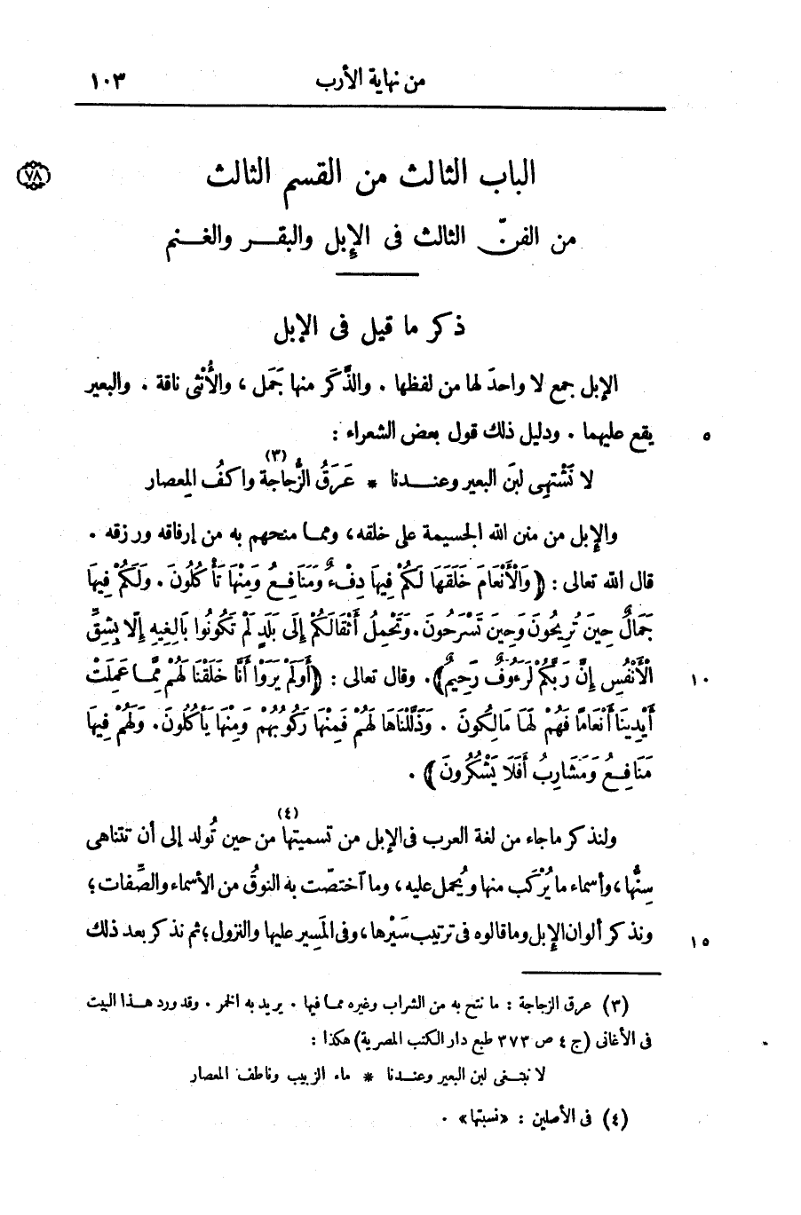 الباب الثالث من القسم الثالث من الفنّ الثالث فى الإبل والبقر والغنم