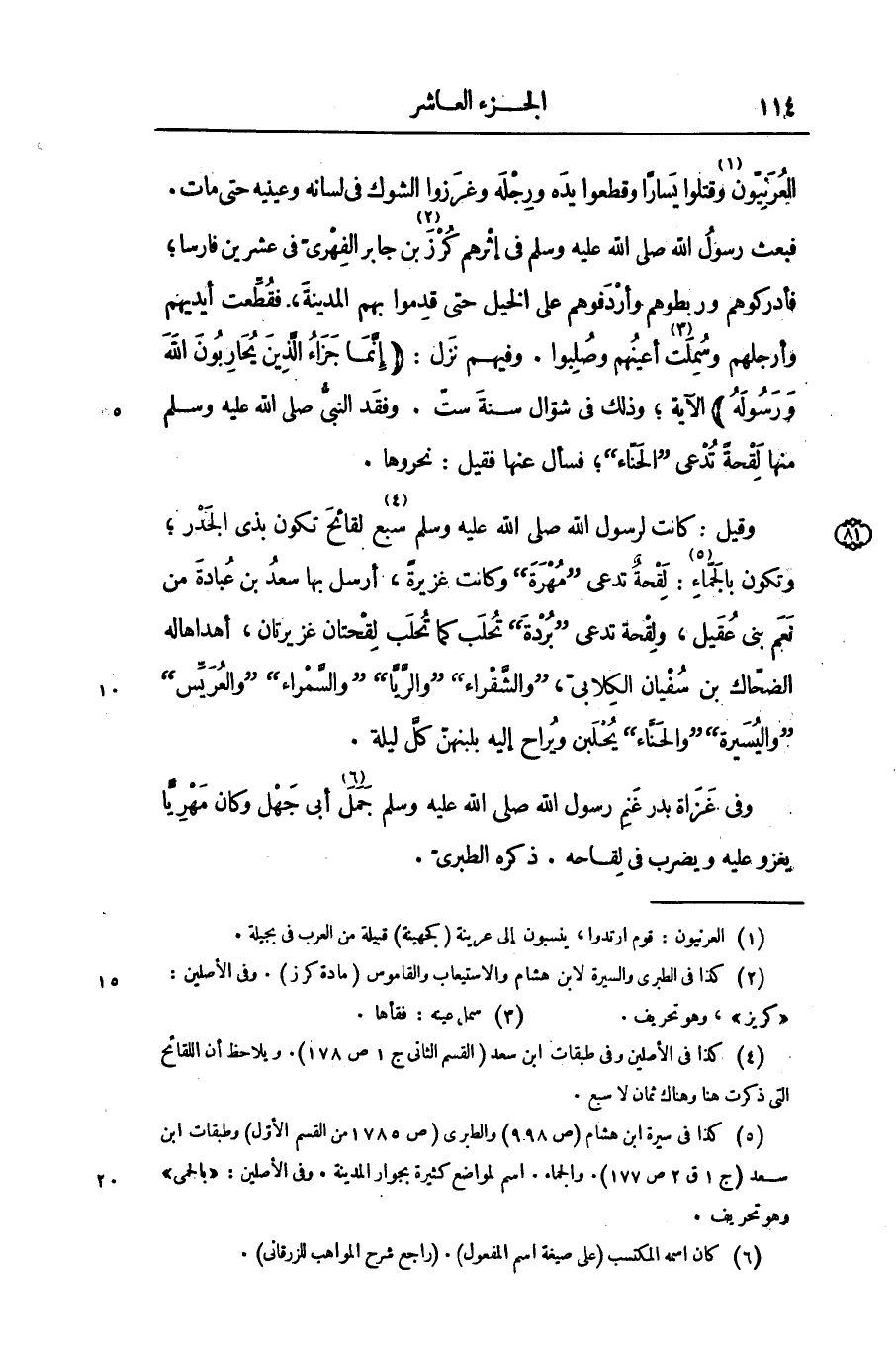 الآية؛ وذلك فى شوّال سنة ستّ. وفقد النبىّ صلى الله عليه وسلم منها لقحة تدعى «الحنّاء» ؛ فسأل عنها فقيل: نحروها.