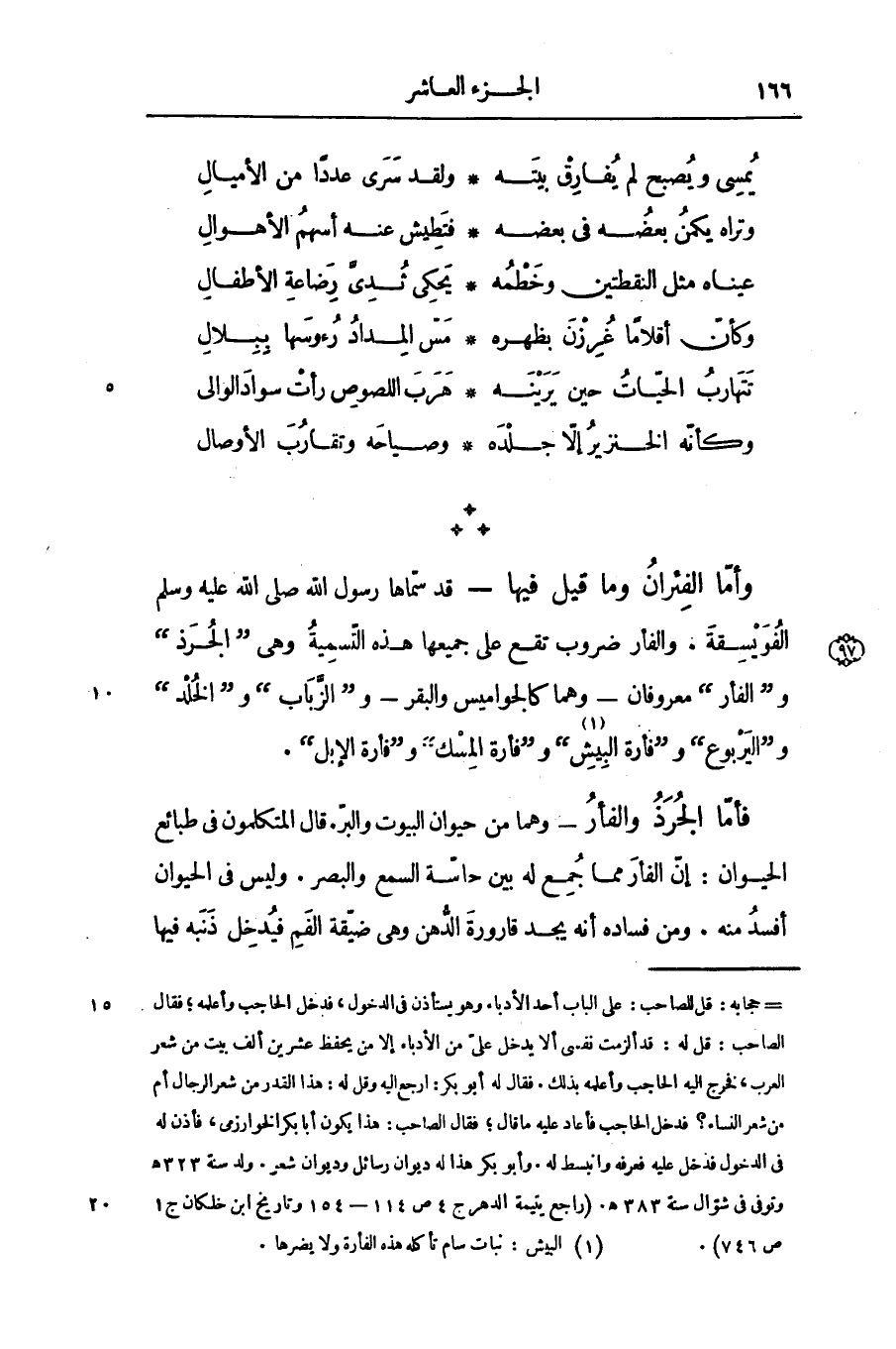 - قد سمّاها رسول الله صلى الله عليه وسلم الفويسقة. والفأر ضروب تقع على جميعها هذه التّسمية وهى «الجرذ» و «الفأر» معروفان- وهما كالجواميس والبقر- و «الزّباب» و «الخلد» و «اليربوع» و «فأرة البيش» «1» و «فأرة المسك» و «فأرة الإبل» .