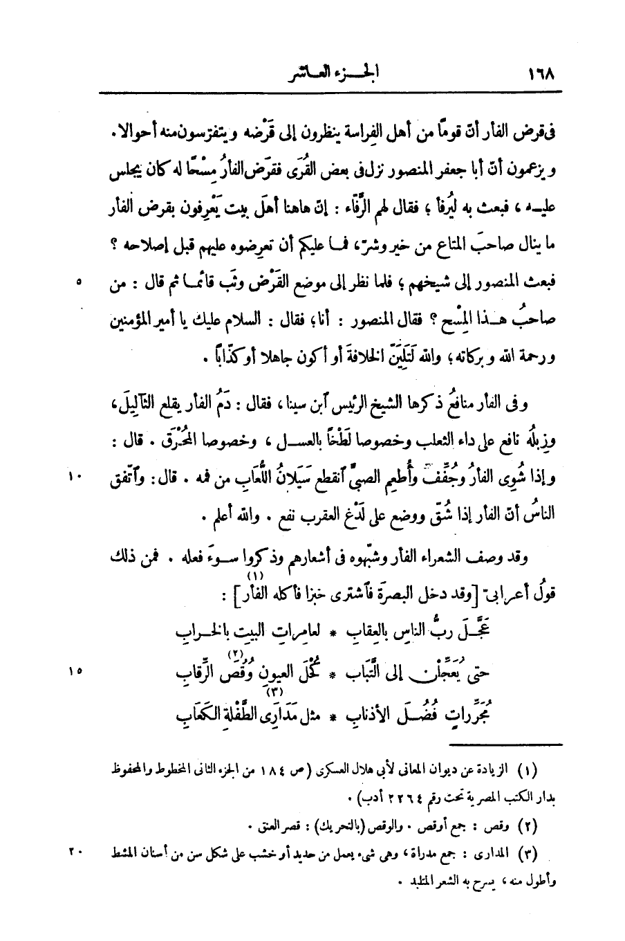 فى قرض الفأر أنّ قوما من أهل الفراسة ينظرون إلى قرضه ويتفرّسون منه أحوالا.