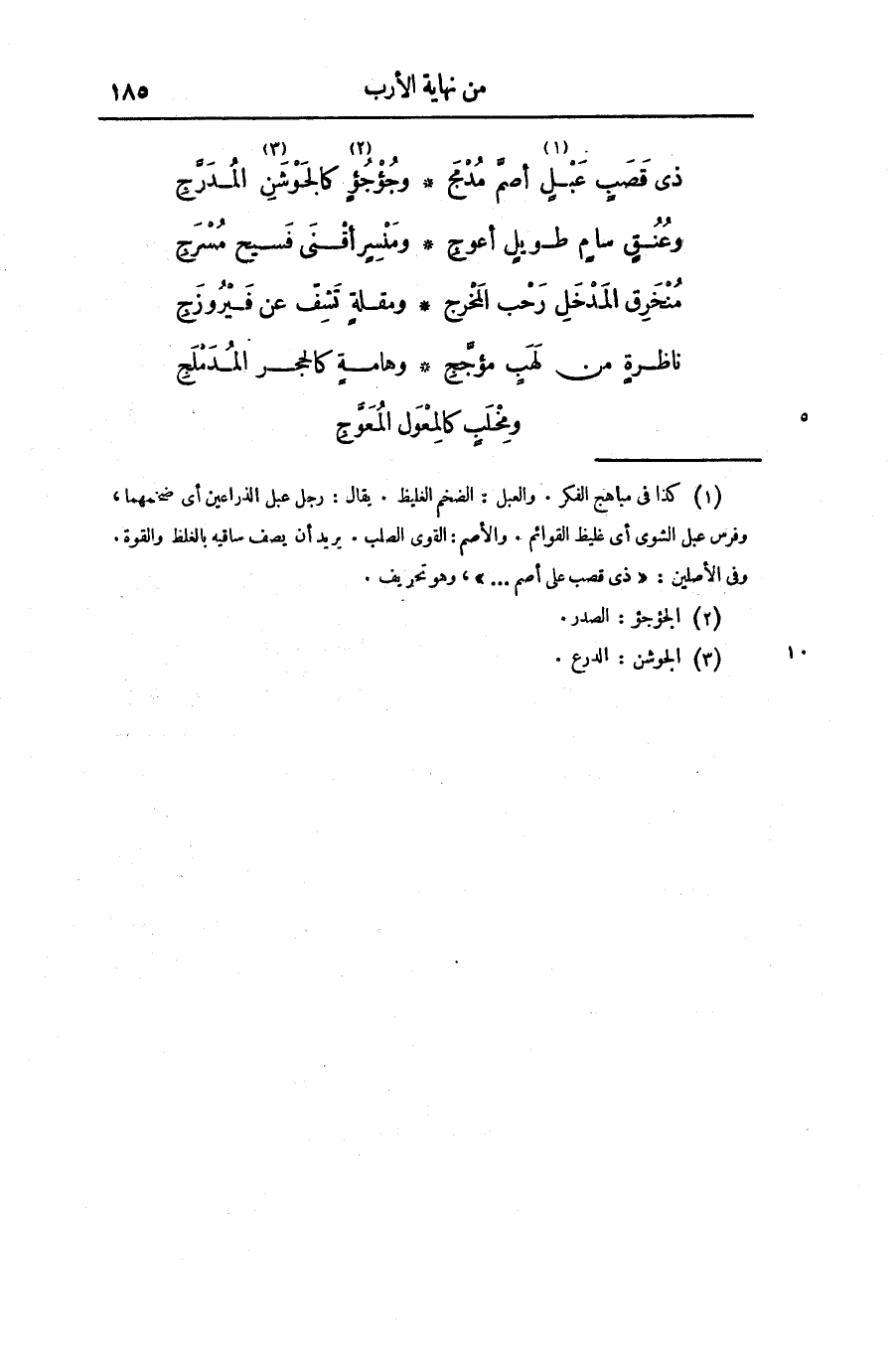 ذى قصب عبل «1» أصمّ مدمج ... وجؤجؤ «2» كالجوشن «3» المدرّج