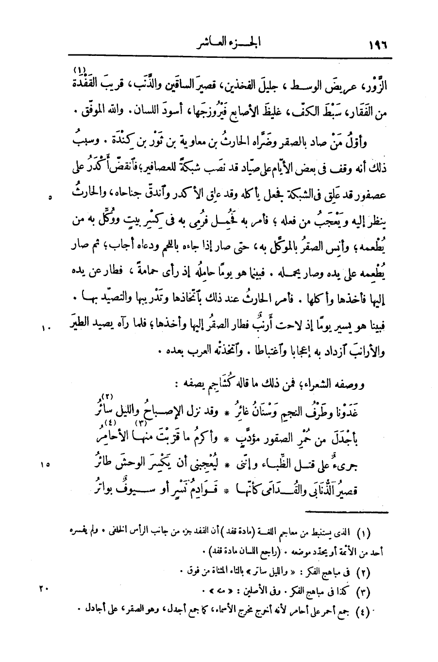 فبينا هو يسير يوما إذ لاحت أرنب فطار الصقر إليها وأخذها؛ فلما رآه يصيد الطير والأرانب ازداد به إعجابا واغتباطا. واتخذته العرب بعده.