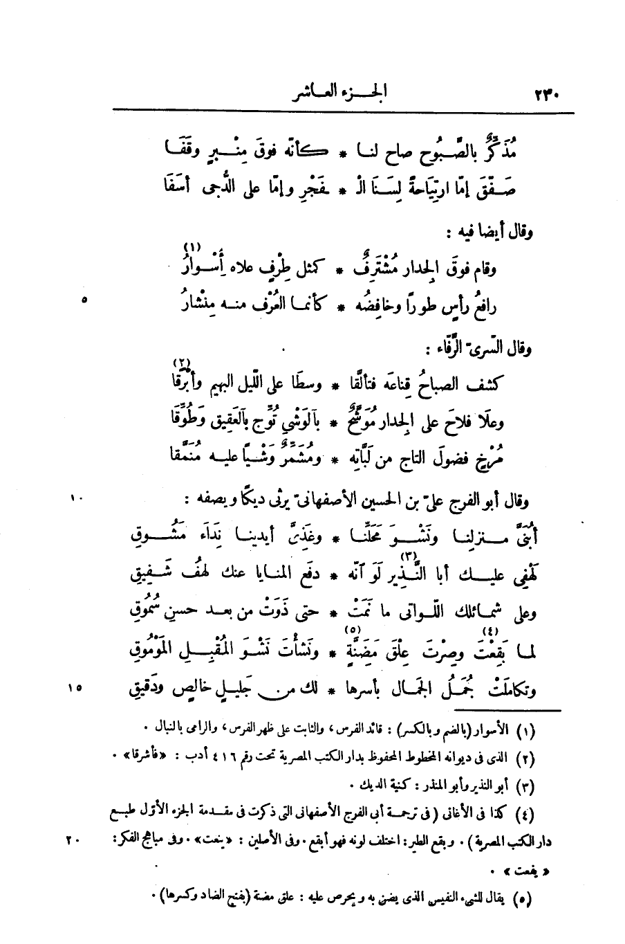 وقام فوق الجدار مشترف ... كمثل طرف علاه أسوار «1»