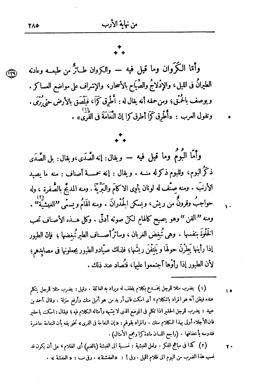 - والكروان طائر من طبعه وعادته الطيران فى الليل، والإدلاج والصّياح بالأسحار، والإشراف على مواضع العساكر.
