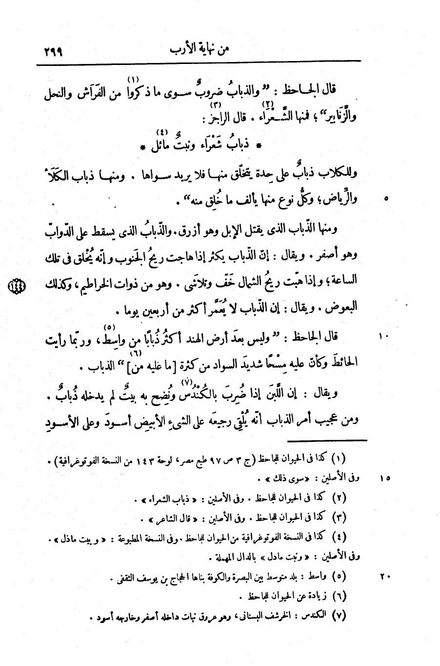 قال الجاحظ: «والذباب ضروب سوى ما ذكروا «1» من الفراش والنحل والزّنابير» ؛ فمنها الشّعراء «2» . قال الراجز «3» :