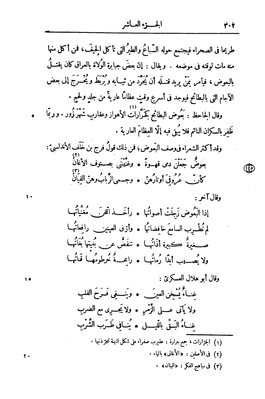 وقال الجاحظ: بعوض البطائح كجرّارات «1» الأهواز وعقارب شهرزور. وربّما ظفر بالسكران النائم فلا يبقى فيه إلّا العظام العارية.