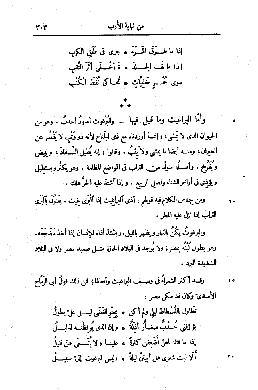 وقد أكثر الشعراء فى وصف البراغيث وأفعالها؛ فمن ذلك قول أبى الرّمّاح الأسدىّ وكان قد سكن مصر: