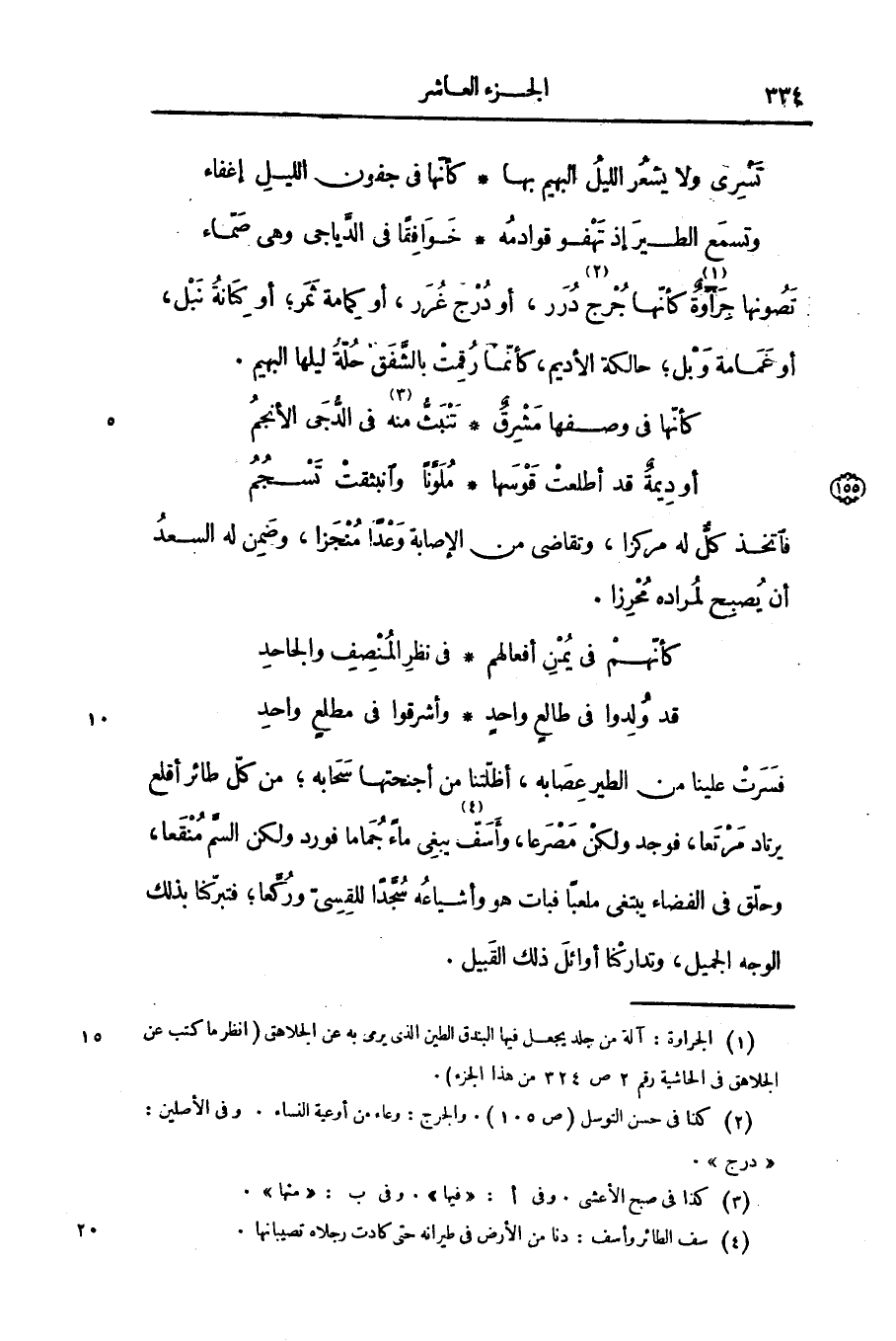 فسرت علينا من الطير عصابه، أظلّتنا من أجنحتها سحابه؛ من كلّ طائر أقلع يرتاد مرتعا، فوجد ولكن مصرعا، وأسفّ «4» يبغى ماء جماما فورد ولكن السمّ منقعا، وحلّق فى الفضاء يبتغى ملعبا فبات هو وأشياعه سجّدا للقسىّ وركّعا؛ فتبرّكنا بذلك الوجه الجميل، وتداركنا أوائل ذلك القبيل.